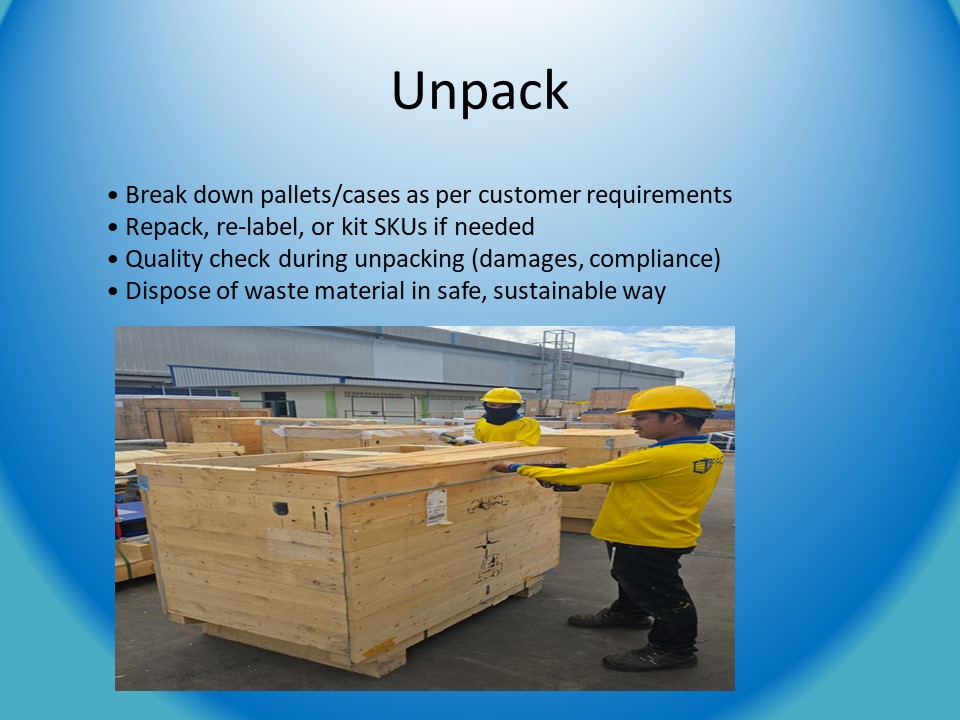 Our warehouse operations go beyond storage. We offer repacking, quality checks, barcoding, relabeling, and light assembly — all designed to add value to your supply chain and reduce lead times.